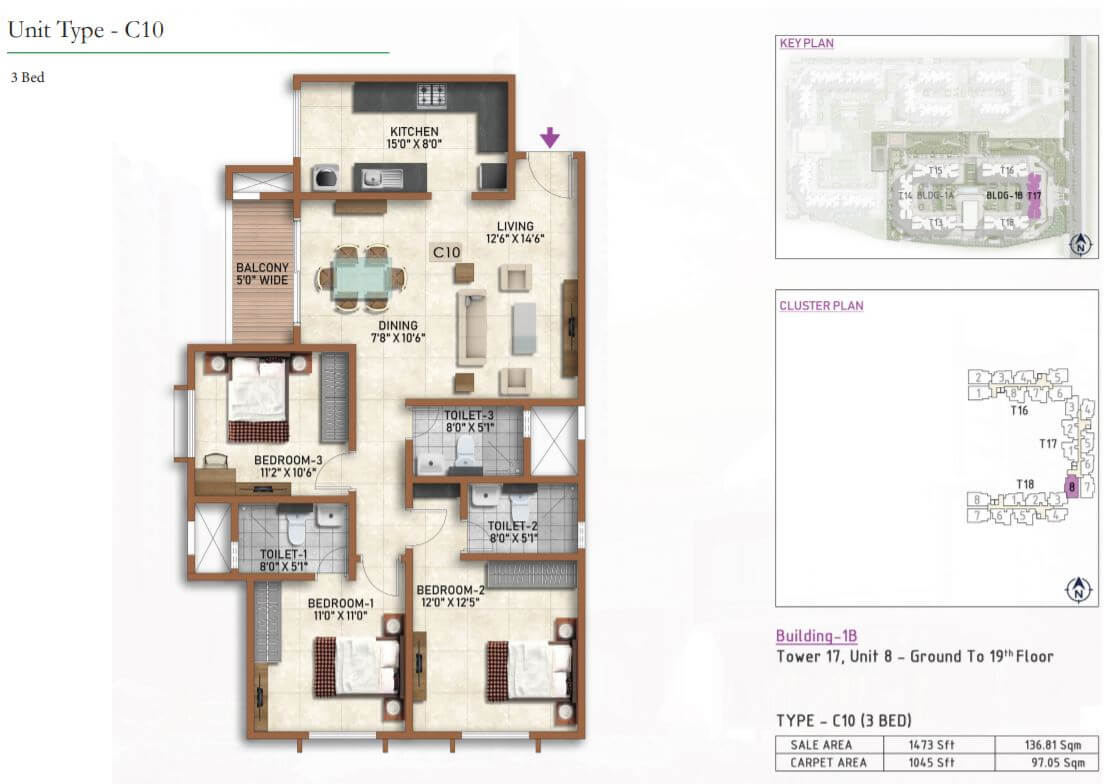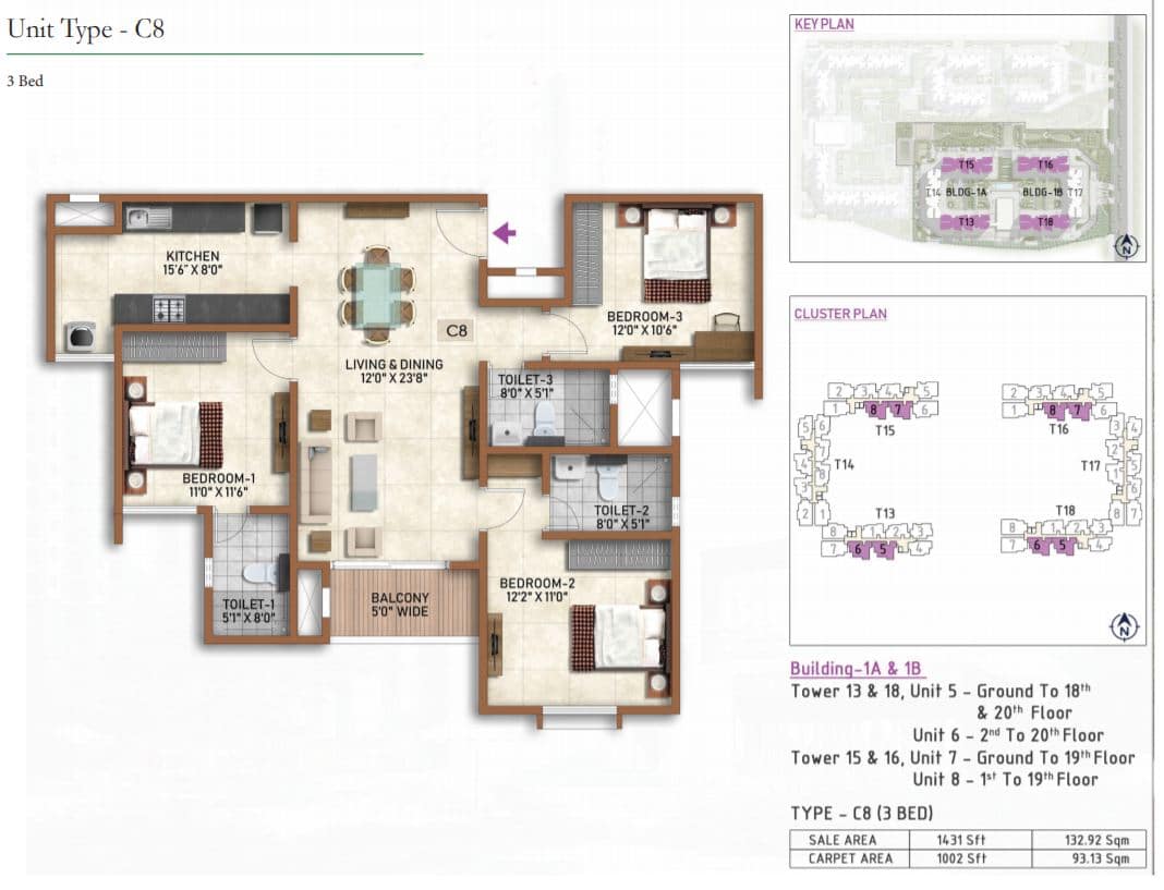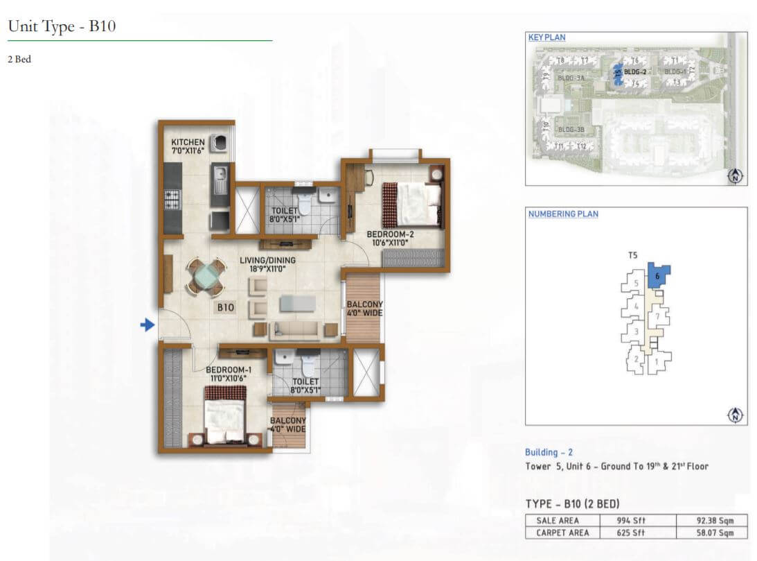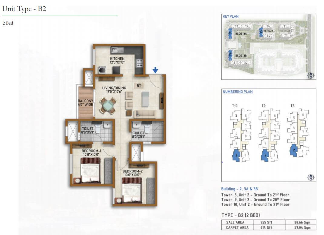 | 2 BR | 955 Sqft | 614 Sqft | 58L Onwards* |