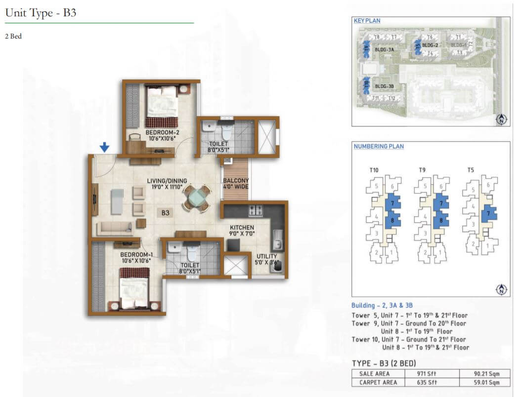| 2 BR | 971 Sqft | 635 Sqft | 59L Onwards* |
