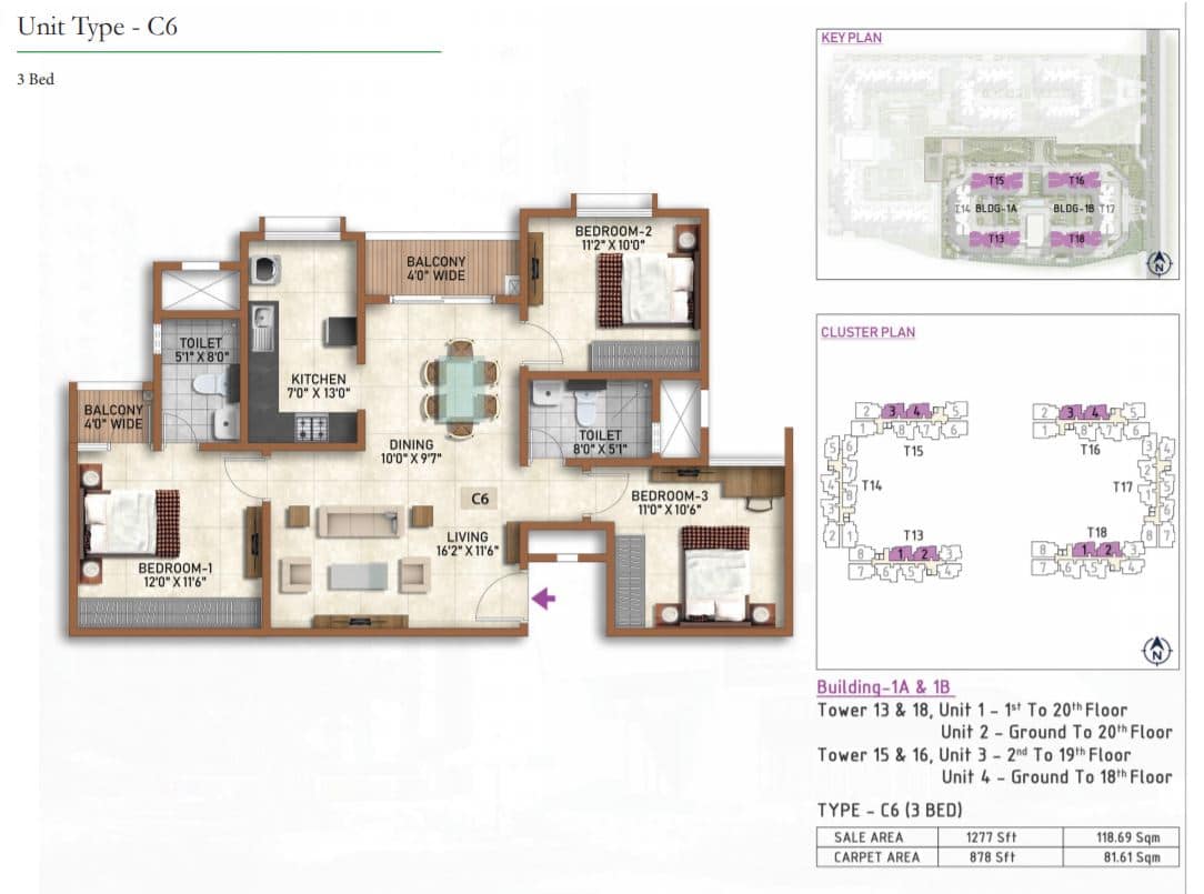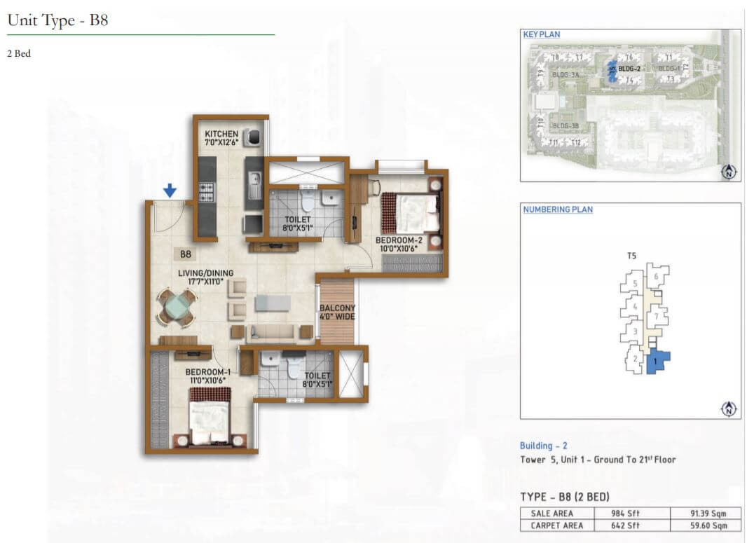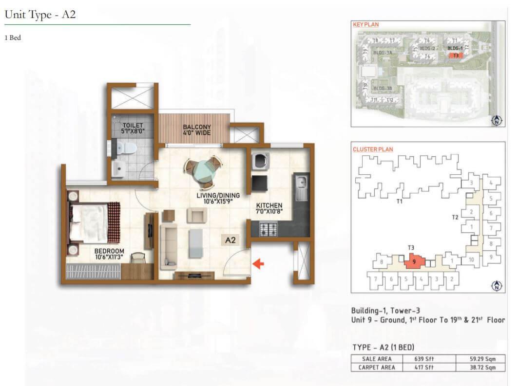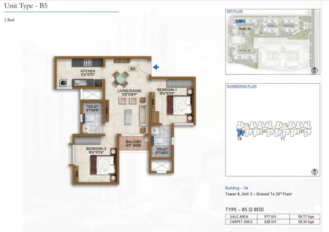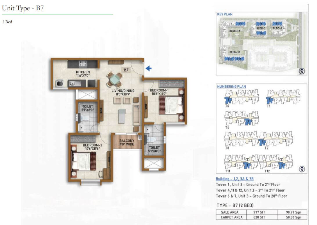 | 2 BR | 977 Sqft | 628 Sqft | 59L Onwards* |