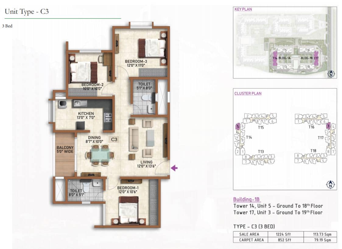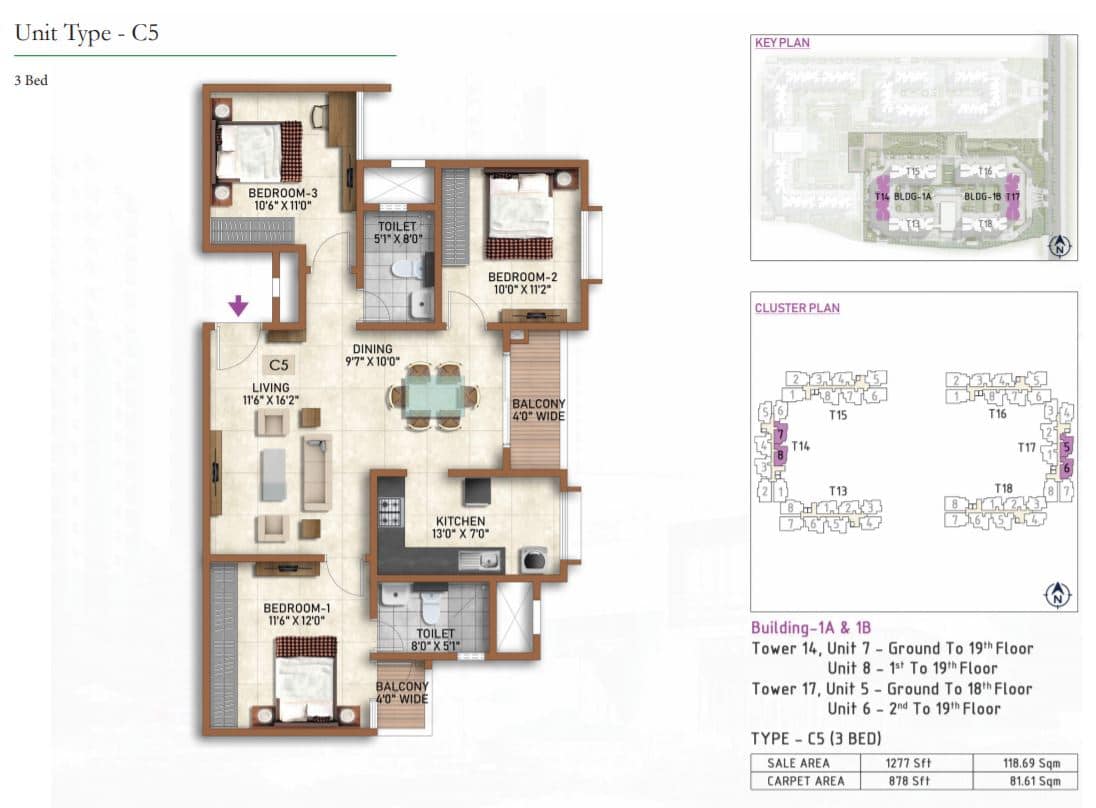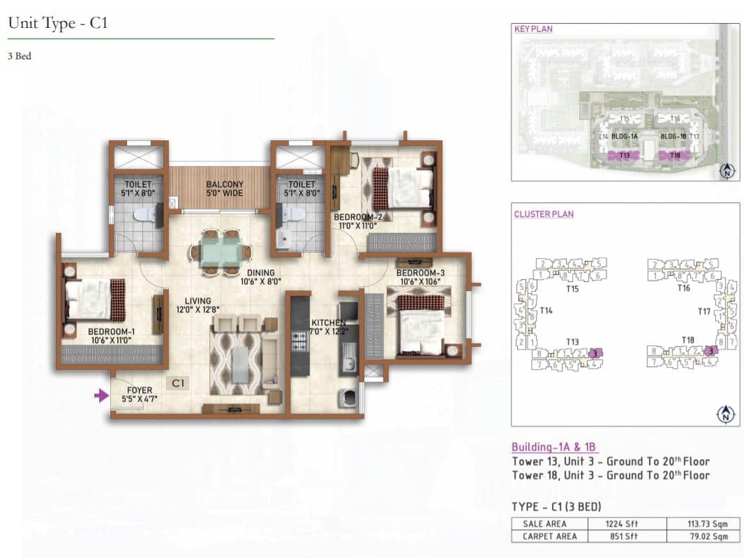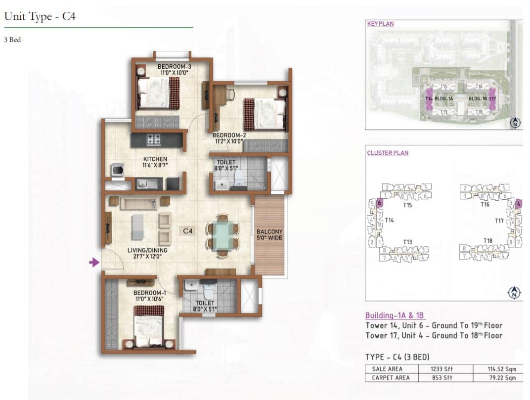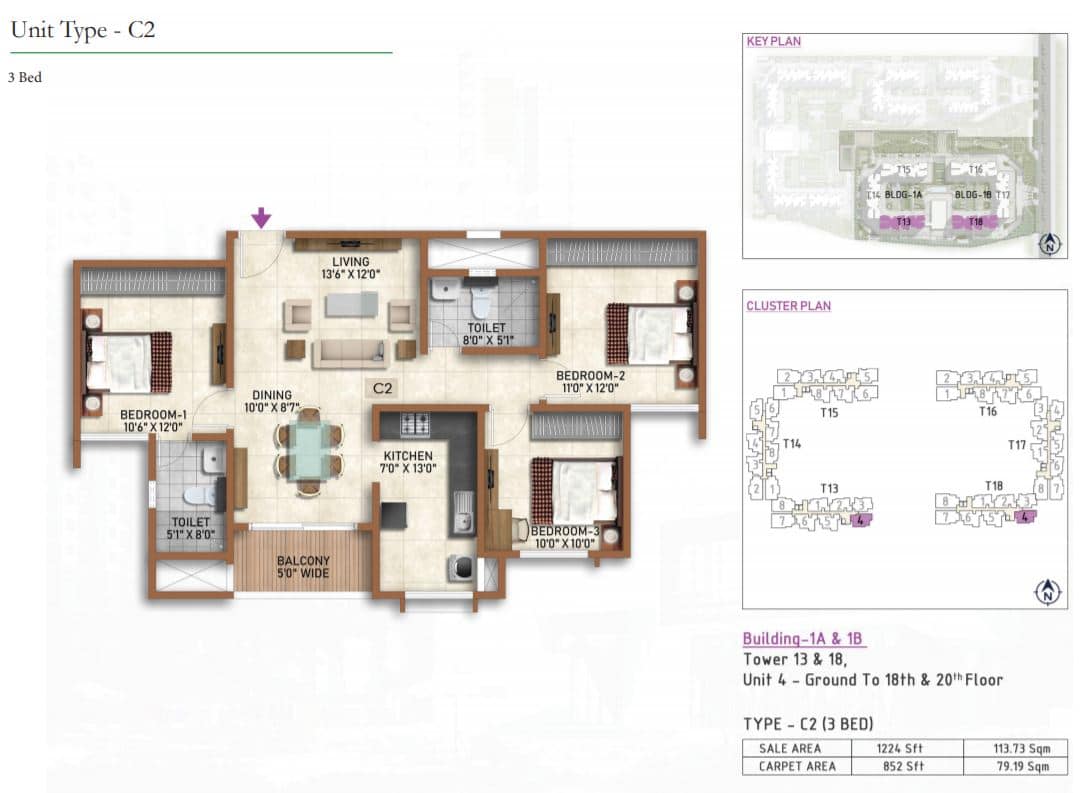 | 2 BR | 977 Sqft | 628 Sqft | 59L Onwards* |
