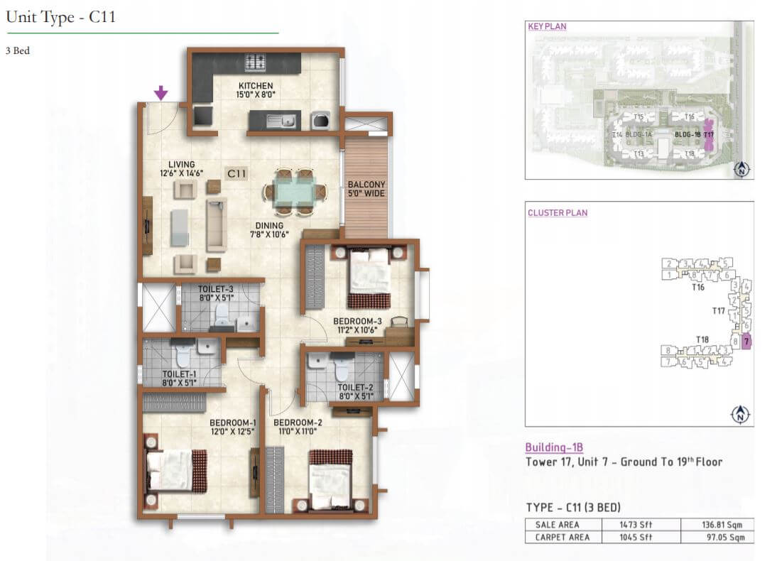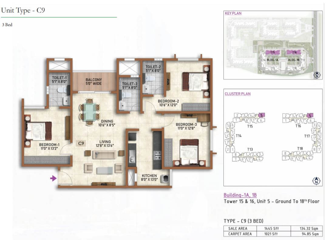 Lifts of suitable size and capacity will be provided in all towers.Apartment Flooring:
