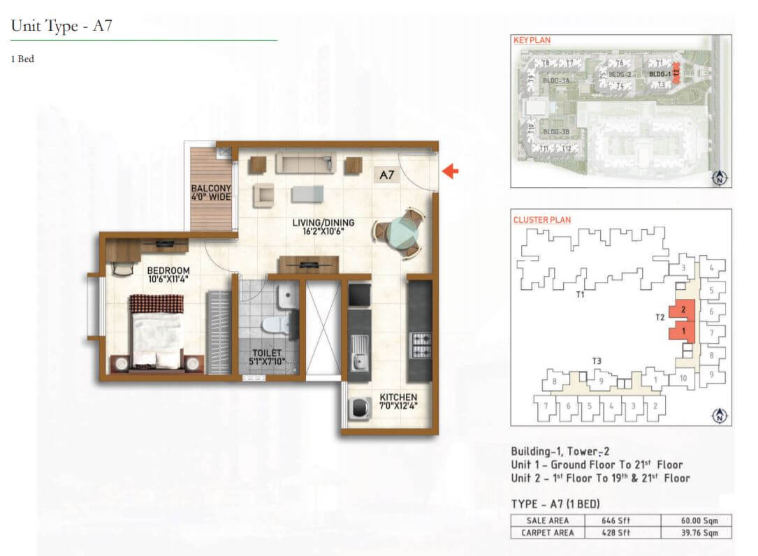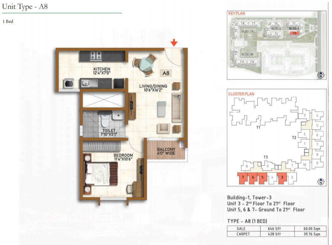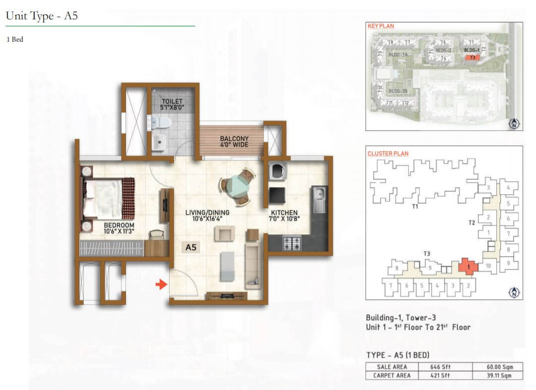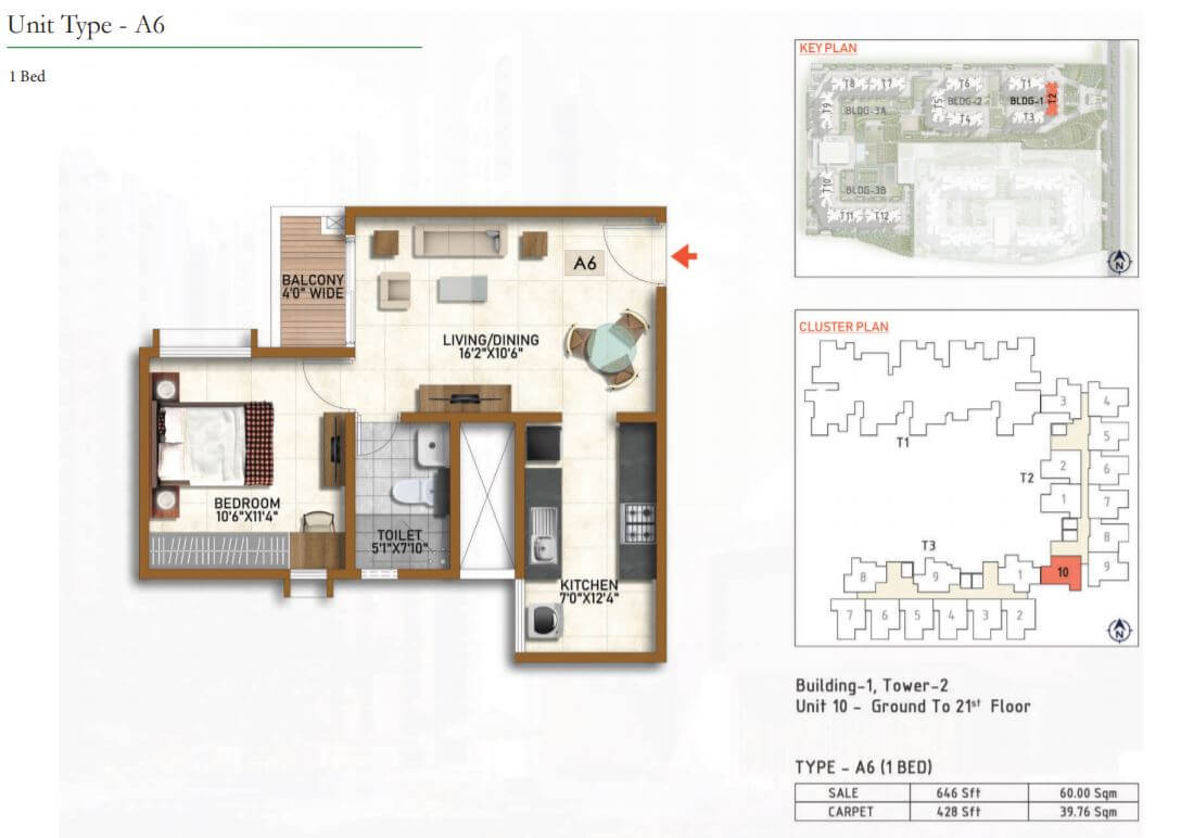 | Unit Type | Built-up Area (Sq.ft.) | Carpet Area(Sq.Ft.) | Basic Price (₹) |